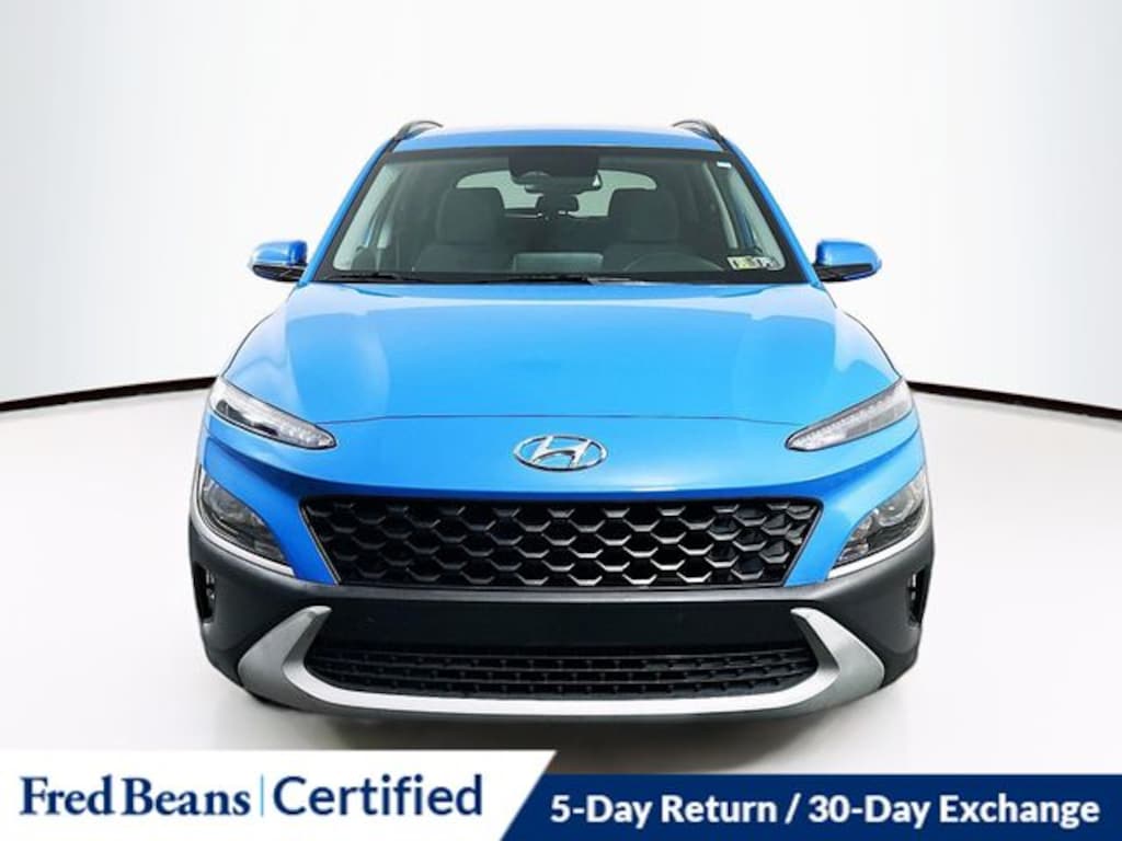 2023 Hyundai Kona SEL SEL 2.0L I4 DOHC Dual CVVT CVT AWD 4D Sport Utility Blue Wave Bought & Serviced at Fred Beans, Local Trade, Great Service History, Factory Certified Vehicle, Free First Oil Change, 5 Day Return / 30 Day Exchange, Auto Rewards Program, 17" x 7.0J Alloy Wheels, Apple CarPlay & Android Auto, Cloth Seat Trim, Exterior Parking Camera Rear, Fully automatic headlights, Heated door mirrors, Illuminated entry, Power door mirrors, Power driver seat, Radio: AM/FM/HD/SiriusXM Audio System, Remote keyless entry, Split folding rear seat, Steering wheel mounted audio controls, Turn signal indicator mirrors.