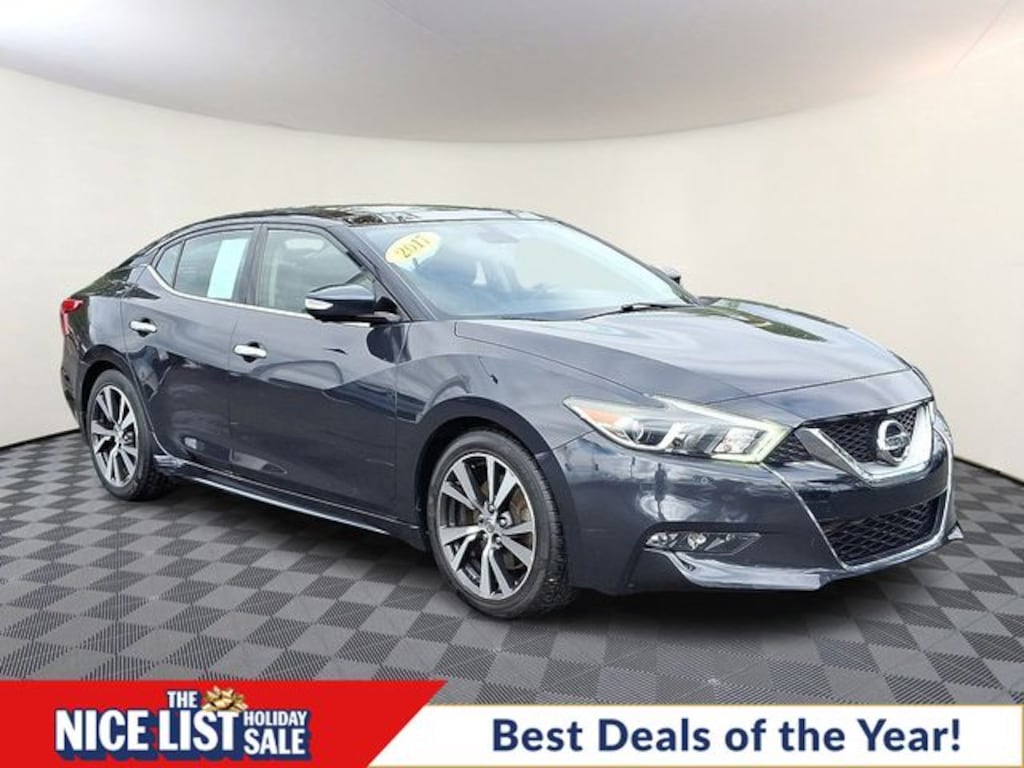 2017 Nissan Maxima Platinum 3.5L V6 DOHC 24V CVT FWD 4D Sedan Storm Blue Local Trade, Great Service History, 3 Month / 4,000 Mile Comprehensive Warranty, Factory Certified Vehicle, Free First Oil Change, Auto Reward Program.