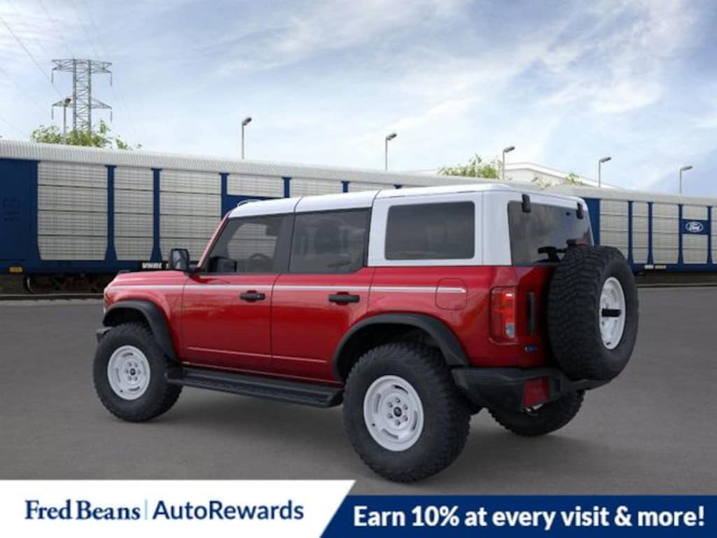 Ruby Red Metallic Tinted Clearcoat 2026 Ford Bronco Heritage Edition 4WD 10-Speed Automatic 2.7L EcoBoost V6 Price includes: $750 - Retail Customer Cash Up to $500 dealer discount applied to MSRP or Fred Beans Price. Sales Price already reflects offer. Not cash back. See dealer.