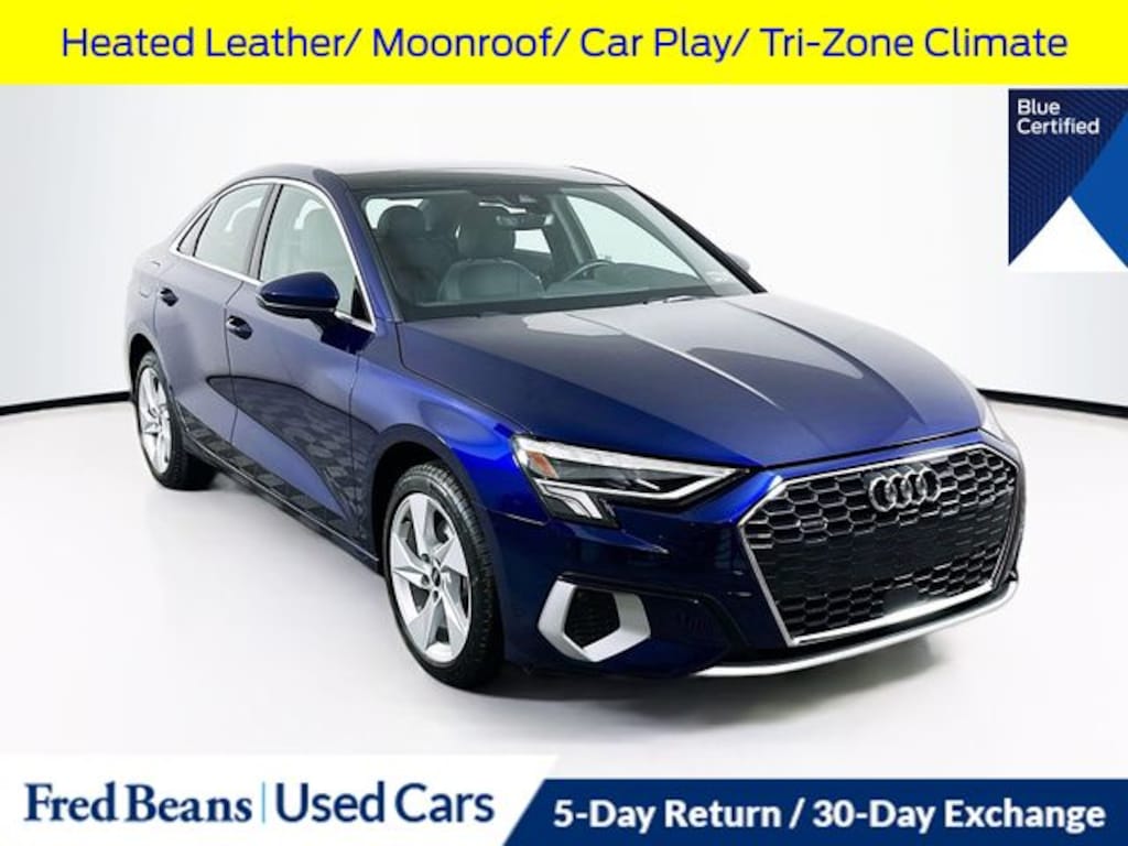 Discover the perfect blend of style, performance, and technology in this stunning 2023 Audi A3 40 Premium quattro. This captivating vehicle boasts a sleek Navarra Blue Metallic exterior, complemented by a sophisticated and well-appointed interior.