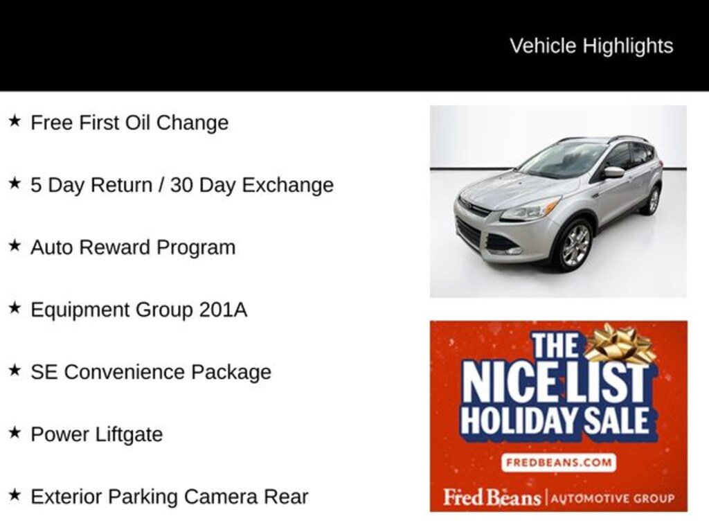 Free First Oil Change, 5 Day Return / 30 Day Exchange, Auto Reward Program, Equipment Group 201A, Exterior Parking Camera Rear, Power Liftgate, SE Convenience Package, 3.21 Axle Ratio, 4-Wheel Disc Brakes, 6 Speakers, ABS brakes, Air Conditioning, Alloy wheels, AM/FM radio: SiriusXM, Black Roof-Rack Side Rails, Brake assist, Bumpers: body-color, CD player, Cloth Buckets w/60/40 Split Rear Seat, Compass, Delay-off headlights, Driver door bin, Driver vanity mirror, Dual front impact airbags, Dual front side impact airbags, Dual Zone Electronic Automatic Temperature Control, Electronic Stability Control, Emergency communication system: 911 Assist, Four wheel independent suspension, Front anti-roll bar, Front Bucket Seats, Front Center Armrest, Front fog lights, Front reading lights, Fully automatic headlights, Illuminated entry, Knee airbag, Low tire pressure warning, Occupant sensing airbag, Outside temperature display, Overhead airbag, Overhead console, Panic alarm, Passenger door bin, Passenger vanity mirror, Perimeter Alarm, Power Converter 110V Outlet, Power door mirrors, Power driver seat, Power steering, Power windows, Radio data system, Radio: AM/FM Single CD/MP3, Radio: Media Hub w/SYNC 3, Rear anti-roll bar, Rear seat center armrest, Rear window defroster, Rear window wiper, Remote keyless entry, Reverse Sensing System, Speed control, Speed-sensing steering, Split folding rear seat, Steering wheel mounted audio controls, SYNC 3 Communications & Entertainment System, SYNC Communications & Entertainment System, Tachometer, Telescoping steering wheel, Tilt steering wheel, Traction control, Trip computer, Variably intermittent wipers, Wheels: 17" Alloy Sparkle Silver Painted Alloy, Wheels: 18" Bright PVD/Chrome Alloy, Equipment Group 201A, Exterior Parking Camera Rear, Power Liftgate, SE Convenience Package.