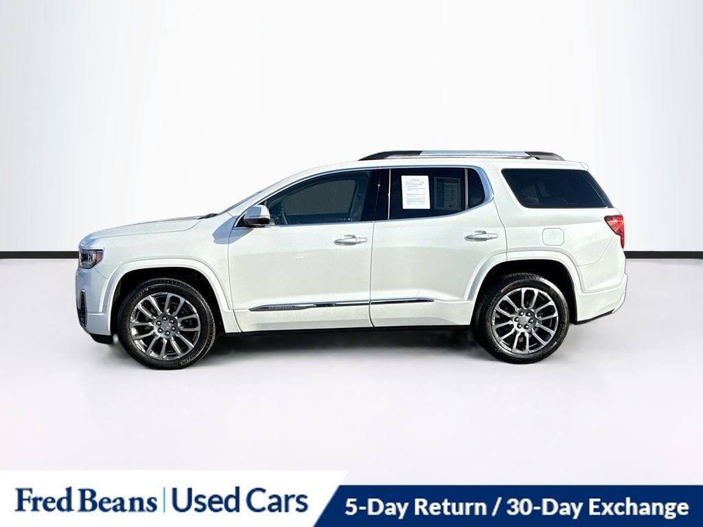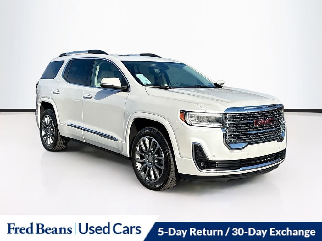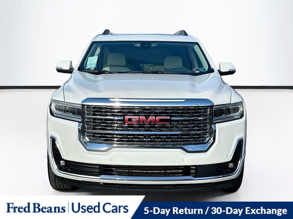 Recent Arrival! Odometer is 2623 miles below market average! CARFAX One-Owner. Clean CARFAX.Certified. GMC Certified Pre-Owned Details:* Powertrain Limited Warranty: 72 Month/100,000 Mile (whichever comes first) from original in-service date* Vehicle History* 24 months/24,000 miles (whichever comes first) Certified Pre-Owned Scheduled Maintenance Plan and 3 days/150 miles (whichever comes first) Vehicle Exchange Program. SiriusXM 3-month trial subscription* Limited Warranty: 12 Month/12,000 Mile (whichever comes first) from certified purchase date* Roadside Assistance* 172 Point Inspection* Transferable Warranty* Warranty Deductible: $02023 GMC Acadia Denali 3.6L V6 SIDI AWD 9-Speed Automatic White Frost TricoatFor better peace of mind all our used vehicles have a 127-point inspection and come with a 5-day return, 30-day exchange (As-Is vehicles are excluded). Our exclusive Auto Rewards Program provides better value with Free First Oil change, Free Pa State Safety inspections, discounts for local merchants and more. Plus, you can earn up to $2000 towards your next vehicle just by servicing with Fred Beans! As Fred Beans always says, our used cars are better because our reputation depends on it.GMC Certified Pre-Owned Certified, AWD, Dark Galvanized/Light Shale Leather, 170 Amp Alternator, 20 Ultra Bright Machined Aluminum Wheels, 3rd row seats: split-bench, 6-Passenger (2-2-2 Seating Configuration), 8 Speakers, 8-Way Power Driver Seat Adjuster, 8-Way Power Passenger Seat Adjuster, Adaptive Cruise Control, Adaptive Ride Control, Alloy wheels, Apple CarPlay/Android Auto, Auto High-beam Headlights, Bose Premium 8-Speaker Audio System Feature, Brake assist, Denali Technology Package, Denali Ultimate Package, Dual SkyScape 2-Panel Power Sunroof, Electronic Stability Control, Emergency communication system: OnStar and GMC connected services capable, Enhanced Automatic Emergency Braking, Front fog lights, Front reading lights, Garage door transmitter, HD Surround Vision, Heads-Up Display, Heated & Ventilated Driver & Front Passenger Seats, Heated door mirrors, Heated Driver & Front Passenger Seats, Heated front seats, Heated Rear Outboard Seating Positions, Heated rear seats, Heated steering wheel, Heavy-Duty Cooling System, Hitch Guidance w/Hitch View, Memory seat, Navigation System, Perforated Leather-Appointed Seat Trim, Power door mirrors, Power Driver Lumbar Control Seat Adjuster, Power driver seat, Power Liftgate, Power Passenger Lumbar Control Seat Adjuster, Power passenger seat, Power windows, Rear Camera Mirror, Rear Camera Mirror Washer, Tilt steering wheel, Trailering Assist Guidelines, Trailering Package, Trip computer, Voltmeter, Wireless Apple CarPlay/Wireless Android Auto, 3.49 Final Drive Axle Ratio, 4-Wheel Disc Brakes, ABS brakes, Air Conditioning, AM/FM radio: SiriusXM with 360L, Auto-dimming door mirrors, Auto-dimming Rear-View mirror, Automatic temperature control, Bumpers: body-color, Compass, Delay-off headlights, Driver door bin, Driver vanity mirror, Dual front impact airbags, Dual front side impact airbags, Four wheel independent suspension, Front anti-roll bar, Front Bucket Seats, Front Center Armrest, Front dual zone A/C, Fully automatic headlights, Illuminated entry, Knee airbag, Low tire pressure warning, Occupant sensing airbag, Outside temperature display, Overhead airbag, Overhead console, Panic alarm, Passenger door bin, Passenger vanity mirror, Performance Ride & Handling Suspension, Power steering, Preferred Equipment Group 5SA, Radio data system, Radio: AM/FM 8 Diagonal Multi-Touch Navigation, Rear air conditioning, Rear anti-roll bar, Rear reading lights, Rear window defroster, Rear window wiper, Remote keyless entry, Roof rack: rails only, Security system, SiriusXM w/360L, Speed control, Speed-sensing steering, Spoiler, Steering wheel memory, Steering wheel mounted audio controls, Tachometer, Telescoping st
