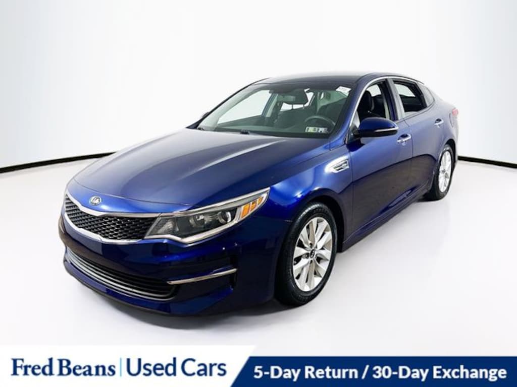 2017 Kia Optima LX 2.4L I4 DGI DOHC 6-Speed Automatic with Sportmatic FWD 4D Sedan Horizon Blue Black Cloth, 16" Alloy Wheels, 4-Wheel Disc Brakes, 6 Speakers, ABS brakes, Air Conditioning, Alloy wheels, AM/FM radio: SiriusXM, Anti-whiplash front head restraints, Brake assist, Bumpers: body-color, Carpeted Floor Mats, CD player, Cloth Seat Trim w/Yes Essentials, Delay-off headlights, Driver door bin, Driver vanity mirror, Dual front impact airbags, Dual front side impact airbags, Electronic Stability Control, Exterior Parking Camera Rear, Four wheel independent suspension, Front anti-roll bar, Front Bucket Seats, Front Center Armrest, Front reading lights, Fully automatic headlights, Illuminated entry, Knee airbag, Low tire pressure warning, Occupant sensing airbag, Outside temperature display, Overhead airbag, Overhead console, Panic alarm, Passenger door bin, Passenger vanity mirror, Power door mirrors, Power steering, Power windows, Radio data system, Radio: AM/FM/CD/MP3/SiriusXM Audio System, Rear anti-roll bar, Rear seat center armrest, Rear window defroster, Remote keyless entry, Security system, Speed control, Speed-sensing steering, Split folding rear seat, Steering wheel mounted audio controls, Tachometer, Telescoping steering wheel, Tilt steering wheel, Traction control, Trip computer, Turn signal indicator mirrors, Variably intermittent wipers, Black Cloth.