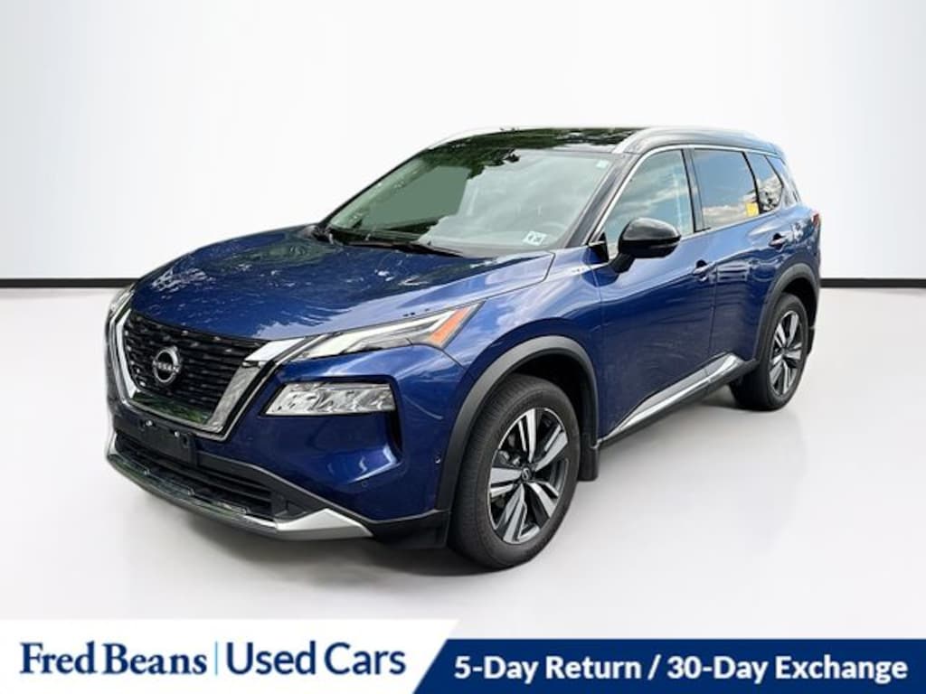 CARFAX One-Owner. 28/34 City/Highway MPG 2023 Nissan Rogue Platinum 1.5L I3 Turbocharged DOHC 12V LEV3-ULEV50 201hp CVT with Xtronic AWD 4D Sport Utility Caspian Blue Metallic/Super Black For better peace of mind all our used vehicles have a 127-point inspection and come with a 5-day return, 30-day exchange (As-Is vehicles are excluded). Our exclusive Auto Rewards Program provides better value with Free First Oil change, Free Pa State Safety inspections, discounts for local merchants and more. Plus, you can earn up to $2000 towards your next vehicle just by servicing with Fred Beans! As Fred Beans always says, our used cars are better because our reputation depends on it.