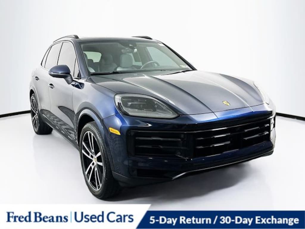 2024 Porsche Cayenne Base 3.0L V6 8-Speed Automatic with Tiptronic AWD 4D Sport Utility Montego Blue Metallic Local Trade, 8-Way Power Seats, Air Conditioning, AM/FM radio: SiriusXM w/360L, Automatic temperature control, Front Bucket Seats, Front dual zone A/C, Heated front seats, Navigation System, Power door mirrors, Power Liftgate, Power windows, Rear window defroster, Rear window wiper, Remote keyless entry, Tilt steering wheel, Turn signal indicator mirrors, Wheels: 20" Cayenne Design.