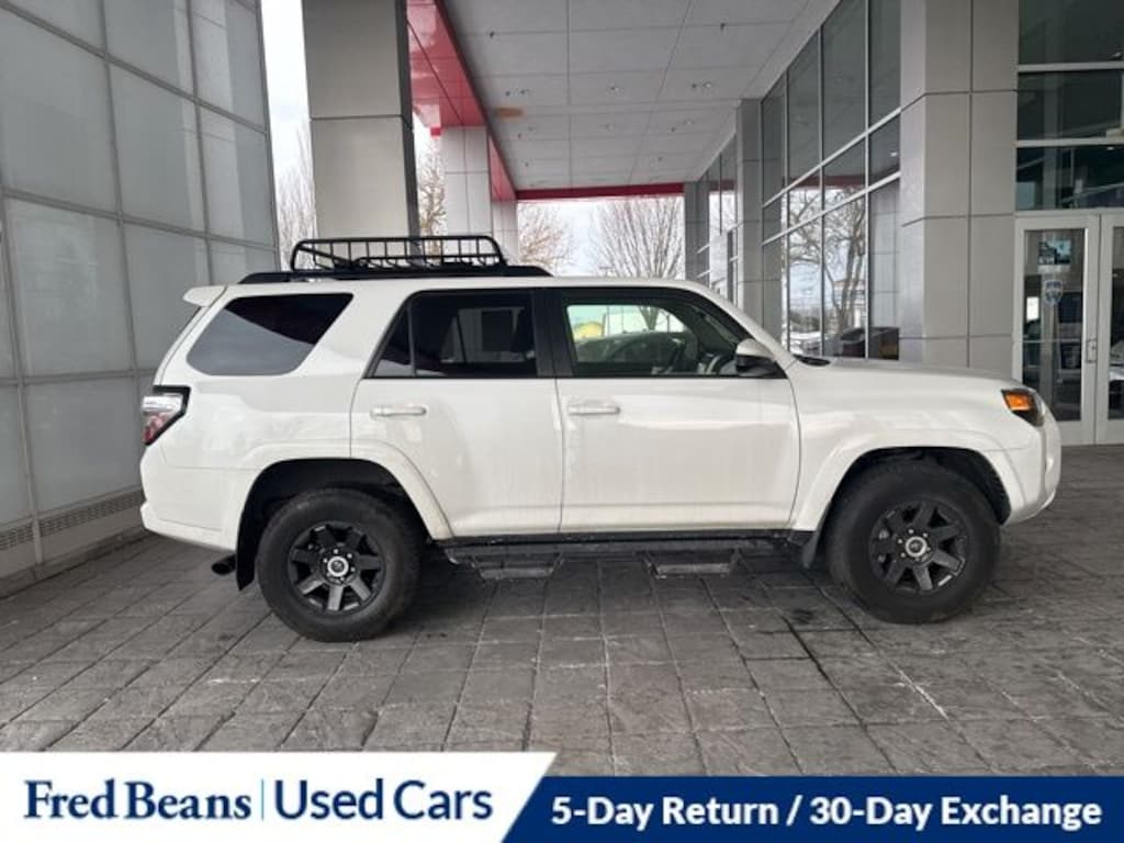 2022 Toyota 4Runner Trail 4.0L V6 DOHC 24V 5-Speed with ECT 4WD 4D Sport Utility White Auto Reward Program, Free First Oil Change, 4Runner Trail, 4D Sport Utility, 4.0L V6 DOHC 24V, 5-Speed with ECT, 4WD, White, Black/Graphite w/Fabric Seat Trim, All Weather Floor Liners, Black Roof Rails, Crossbars, Trail Edition, Trunk Carpet, Yakima Load Warrior Rack.