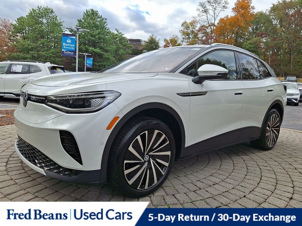 2023 Volkswagen ID.4 Pro S Plus Electric Motor Single-Speed Automatic AWD 4D Sport Utility Opal White w/Black Roof Great Service History, Remainder of Factory Warranty, Factory Certified Vehicle, Auto Reward Program.